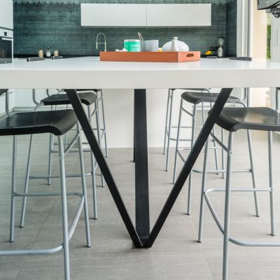 Réalisation d’un piètement sur mesure en acier plié pour l’ilot central pouvant recevoir 10 couverts, design Marie Labat