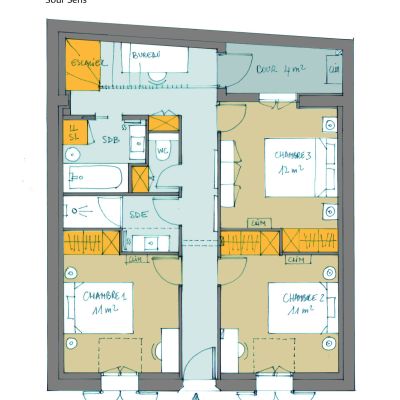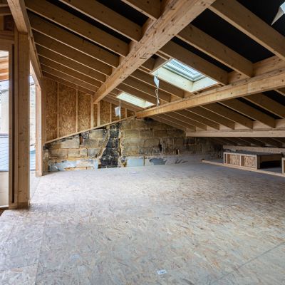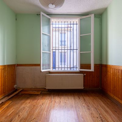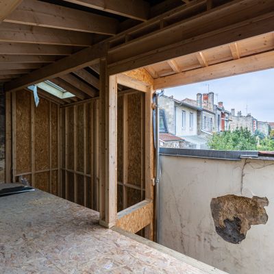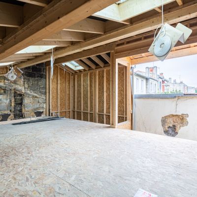 Au départ de notre rencontre, mon client me contacte pour surélever une petite échoppe double de 56 m2 dont il vient d’hériter. Son programme est bien défini puisqu’il a besoin de placer 3 chambres et une salle de bain dans le futur étage et souhaite décloisonner le rez-de-chaussée pour y placer une grande pièce de vie lumineuse esprit Loft.